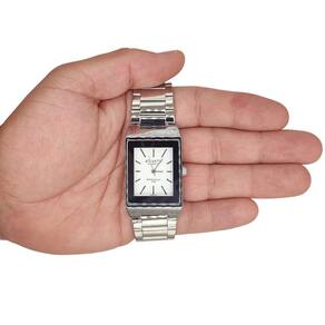 ESPECIFICAÇÕES DO RELÓGIO DE PULSO ATLANTIS SOCIAL MASCULINO RESISTENTE À ÁGUA: MARCA: Atlantis Sports MODELO: G3256/Atlantis autêntico/Masculino/Analógico/Social/Prático/Moderno/Retangular/Vidro Espelhado nas Laterais GÊNERO: Masculino COR DA CAIXA: Prateado COR DO RELÓGIO: Prateado COR DO MOSTRADOR: Branco Grifas Retas ou Prata Numeros ou Azul Numeros MATERIAL DA PULSEIRA: Metal MATERIAL DA CAIXA: Metal MODELO DO FECHO: Borboleta TIPO DE MOVIMENTO: Bateria TIPO DE VIDRO: Vidro Mineral TAMANHO DA CAIXA INCLUÍDO A COROA: 30mm x 50mm ESPESSURA: 1cm É RESISTENTE À ÁGUA? Sim É ADEQUADO PARA MERGULHO? Não PROFUNDIDADE DE RESISTÊNCIA À ÁGUA: 50 Metros