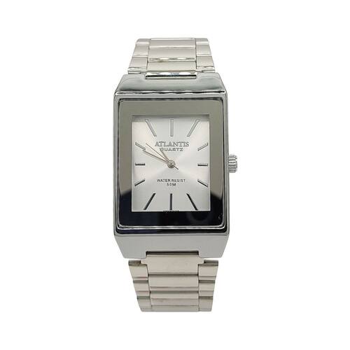 ESPECIFICAÇÕES DO RELÓGIO DE PULSO ATLANTIS SOCIAL MASCULINO RESISTENTE À ÁGUA: MARCA: Atlantis Sports MODELO: G3256/Atlantis autêntico/Masculino/Analógico/Social/Prático/Moderno/Retangular/Vidro Espelhado nas Laterais GÊNERO: Masculino COR DA CAIXA: Prateado COR DO RELÓGIO: Prateado COR DO MOSTRADOR: Branco ou Preto ou Azul MATERIAL DA PULSEIRA: Metal MATERIAL DA CAIXA: Metal MODELO DO FECHO: Borboleta TIPO DE MOVIMENTO: Bateria TIPO DE VIDRO: Vidro Mineral TAMANHO DA CAIXA INCLUÍDO A COROA: 30mm x 50mm ESPESSURA: 1cm É RESISTENTE À ÁGUA? Sim É ADEQUADO PARA MERGULHO? Não PROFUNDIDADE DE RESISTÊNCIA À ÁGUA: 50 Metros