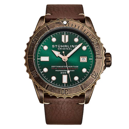 O Relogio Automatico Swiss Depthmaster Heritage 1003L 44MM e uma obra prima da Stuhrling, que combina elegancia, robustez e precisao em um unico produto. Com um mostrador verde e cobre, este relogio e uma verdadeira declaracao de estilo e bom gosto. A pulseira de couro marrom adiciona um toque de sofisticacao e conforto ao seu pulso, tornando o ideal para uso diario ou ocasioes especiais.