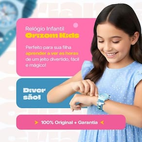ITENS INCLUSOS - 1 relogio infantil analogico Orizom Kids - 1 oculos de sol infantil em formato de coracao - 1 pulseira colorida complementar - 1 caixa premium para organizar e proteger os itens