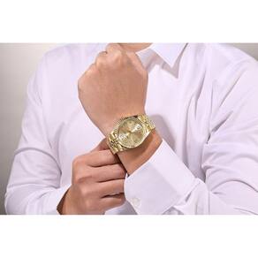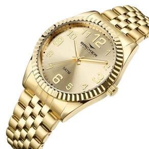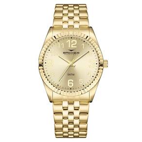 Relógio Backer Feminino Ref: 10303145f Ch Clássico Dourado DESCRIÇÃO DO PRODUTO: Caixa de Metal Pulseira de Aço Vidro de Cristal Mineral Fundo de Pressão Resistente à Água 5 Atm Diâmetro / Largura da Caixa: 40.00 MM Funções: Analógico Design Alemão Alimentação do Maquinário: Bateria Mostrador champanhe com todos os números Maquina Japonesa