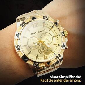 Kit Presente Masculino Orizom Spaceman - Relógio Analógico Dourado + Corrente, Pingente e Pulseira em Aço Inoxidável + Óculos de Sol Premium Surpreenda com o Kit Presente Masculino Orizom Spaceman Este conjunto exclusivo combina elegância, estilo e qualidade incomparável. - Relógio Masculino Analógico Orizom Spaceman: Desfrute da sofisticação do design dourado e banhado em aço inoxidável, para durabilidade e resistência impecáveis. - Corrente Grumet Banhada em Aço Inoxidável: Aproximadamente 60cm de pura elegância. O complemento perfeito para qualquer visual refinado. - Pingente Cruz Banhado em Aço Inoxidável: Adicione significado e estilo ao seu look. Um toque de personalidade e fé que não passa despercebido. - Pulseira Grumet Banhada em Aço Inoxidável: Aproximadamente 25cm de pura sofisticação. O toque final para um visual completo e elegante. - Óculos de Sol Orizom Spaceman X: Proteção premium para seus olhos com estilo incomparável. e hastes em acetato, lentes com proteção UV para conforto e proteção em grande estilo. Presenteie com classe e estilo Este kit completo é a escolha ideal para surpreender o homem especial em sua vida. Perfeito para aniversários, datas comemorativas ou para mostrar seu carinho. Garanta já o seu conjunto de elegância e estilo exclusivo Orizom Spaceman Marca: Não Informado