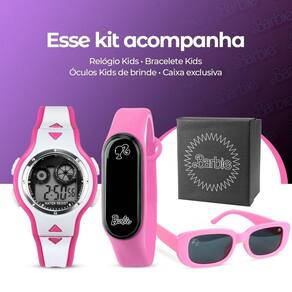 Relogio Barbie + Digital Infantil + Oculos Sol + Caixa + Rosa Menina Alarme Presente Data Este conjunto inclui: