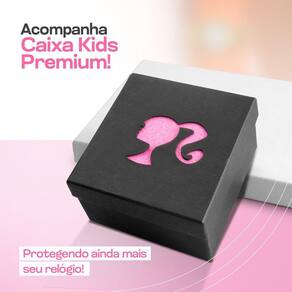 - Relógio infantil em formato de bracelete, digital e com iluminação LED. À prova d'água, com pulseira de silicone ajustável. - Colar infantil emborrachado, totalmente ajustável, para não incomodar a pequena. - Pingente da Barbie em metal, na cor rosa, com o icônico logotipo da marca. - Óculos de sol infantil, da marca Orizom, modelo kids, com temática da Barbie e proteção UV. - Caixa ultra premium com temática da Barbie, perfeita para armazenar e organizar os acessórios. Ean: 7892221929238