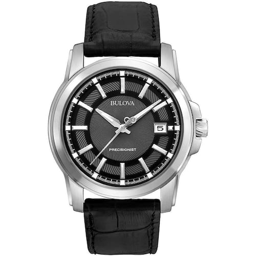 Alimentado pelo movimento Precisionist de cristal de quartzo de três pinos proprietário da Bulova com uma frequência vibracional de 262 kHz