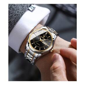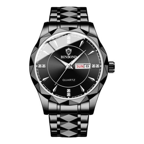 Calendário masculino impermeável em aço tungstênio relógio de quartzo Movimento do relógio - Movimento de quartzo - Diâmetro do movimento de quartzo - Diâmetro do relógio: 42 mm Espessura do relógio: 13 mm Largura da pulseira: 22 mm Comprimento da pulseira: 260 mm Peso do relógio - Peso do relógio: 70 g Material da caixa: material da pulseira de metal - Material da caixa: aço branco - Fivela -Aço branco Sombreamento especular: espelho de vidro aprimorado -Embalagem do produto em cristal: vidro de cristal Caixa de tampa - Caixa de lista Peso da embalagem: 50g Especificação da embalagem: 14,5 cm x 6,5 cm x 3 cm Tipo de fivela - Quantidade de embalagem: fivela/fivela Nível de impermeabilidade: 30m