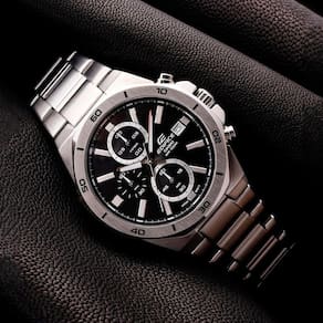 Mecanismo: Quartzo - Material da caixa e do bezel: Aço inoxidável - Material da pulseira: Aço inoxidável - Tipo de fecho: Fecho triplo - Tamanho da caixa C L A : 47 44,3 10,8mm - Peso: 136g - Resistencia à água: 10ATM - Duração de pilha: 2 anos em SR920SW - Vidro: Cristal Mineral - Placa traseira: Trava de rosca - Cronômetro de 1/10 segundo Capacidade de medição: 59'59,9'' Modos de medição: Tempo decorrido, tempo intermediário, tempos do 1º ao 2º lugar - cronometragem regular: Analógico: 3 ponteiros horas, minutos, segundos , 3 mostradores cronômetro 1/10 segundos, cronômetro minutos, cronômetro segundos Exibição de data - Precisão: 20 segundos por mês