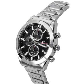 Vidro: Mineral Material da caixa: Aço inoxidável Cor da caixa: Prata Material da pulseira: Aço Inoxidável Cor da pulseira: Prata Cor do mostrador: Preto Tamanho da caixa: 41 mm Espessura da caixa: 10,5 mm Mecanismo: Quartz Funções: Visor de data / Cronômetro de 1/10 segundos / Horário regular Analógico: 3 ponteiros (hora, minuto e segundos), 3 mostradores (segundos, minutos e segundos do cronômetro) / Precisão: ±20 segundos por mês Resistência à água 10 atm