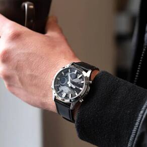 Funções: Cronômetro de 1/100 segundos / 29 horários mundiais (30 cidades, horário de verão ativado ou desativado / Temporizador / 3 alarmes diários / Calendário automático completo até o ano de 2099 / Telememo com capacidade de 30 grupo de dados / Formato 12/24 / Horário regular Analógico: 2 ponteiros (hora, minutos) e Digital hora, minuto e segundo, am/pm, mês, data e dia / Precisão: 30 segundos por mês