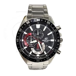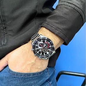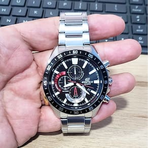 Marca: Casio Modelo: EFV-620D-1A4VUDF Tipo de relógio: Analógico Gênero: Masculino Cor da caixa: Prateado Cor da pulseira: Prateado Estilo: Casual Alarme: Não Cronógrafo: Sim Calendário: Sim Luz: Não – ponteiros e marcadores fluorescentes Resistência à água: Sim – 10 ATM = 100 metros Tipo de fecho: Dobrável, com trava lateral Material da Caixa: Aço Inoxidável Material da Pulseira: Aço Inoxidável Características do vidro: Vidro Mineral Tamanho da caixa (A x L): 55 × 50.5 mm Espessura da caixa: 12 mm Comprimento da pulseira: 24 cm Largura da pulseira: 20 mm Tampa do fundo: Rosqueado Peso: 154 Gramas Alimentação: Bateria Garantia do Fabricante: 12 meses Fabricante: Casio