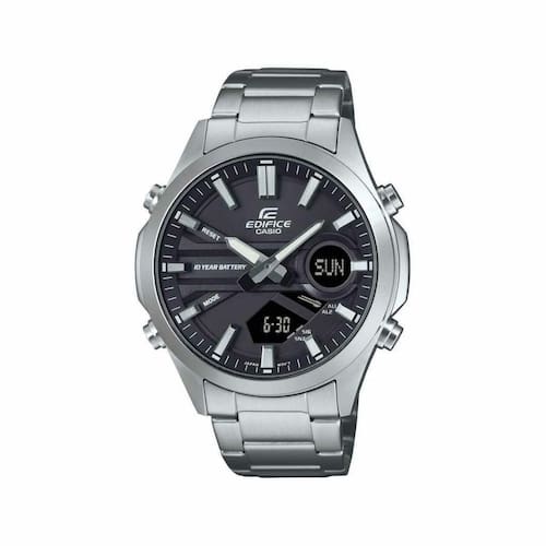 Liberte-se para ter foco na vida. Use a combinação de relógio analógico-digital EFV-C120 com uma bateria de 10 anos com a qual você não terá que se preocupar por muito tempo. O EFV-C120 assume o posto do EFV-C110, com todas as vantagens de um relógio de combinação analógico-digital e uma bateria de longa duração, mas em um design ainda mais compacto e elegante. Você vai adorar a ampla variedade de funções, incluindo hora mundial, cronômetro, alarme, temporizador de contagem regressiva e resistência à água de até 100 metros.