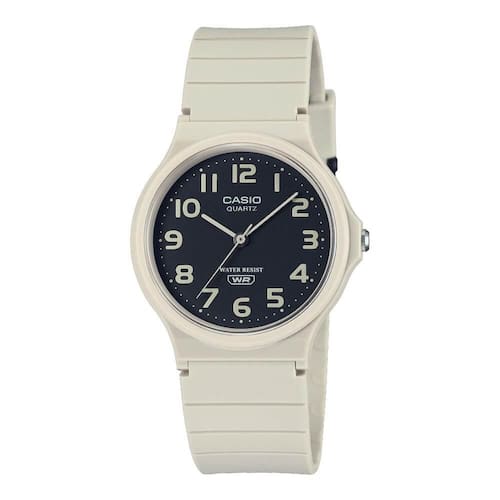 Relógio Casio Feminino Analógico Creme MQ-24UC-8BDFVá para o casual clássico, com um relógio com ponteiros básicos de horas, minutos e segundos, um perfil fino e um ajuste leve e confortável. Em cores terrosas e foscas, este acessório de moda oferece estilo e praticidade.Especificações:Material da caixa / moldura: ResinaPulseira de resinaResistente à águaAproximadamente. vida útil da bateria: 3 anos no SR626SWVidro de resinaRecursos:Precisão: ± 20 segundos por mêsHorário regular: Analógico: 3 ponteiros (hora, minuto, segundo)Medidas:Diâmetro da caixa: 3,8×3,,5 cmEspessura da caixa: 0,8 cmLargura da pulseira: 1,8cmTamanho da pulseira: 20cmPeso do relógio: 20gConteúdo da Embalagem:Estojo da marcaAcessórios (correspondentes a cada modelo)Manual em PortuguêsCertificado de 01 ano junto ao FabricanteNota Fiscal EletrônicaFornecedor: Casio Brasil Comércio Produtos Eletrônicos Ltda. CNPJ:10.172.255/0001-95