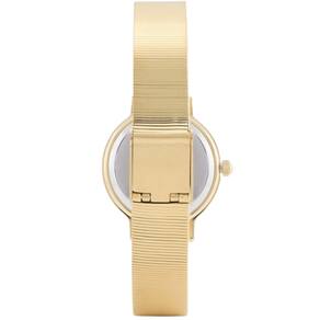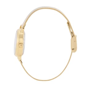 Características Formato do Relógio: Redondo Composição do Vidro: Cristal mineral Material da Caixa: Aço inox Cor da Caixa: Dourado Cor do mostrador: Branco Material da Pulseira: Aço inox Cor da Pulseira: Dourado Mecanismo: Analógico quartz