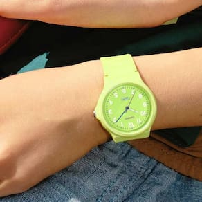 Seus ponteiros bem definidos, incluindo o de minutos em azul, facilitam a leitura das horas de forma rápida e clara. Por isso, é ideal tanto como primeiro relógio quanto como uma peça casual para compor looks descontraídos e cheios de cor.