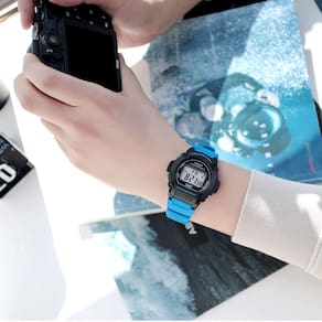 Características Formato do Relógio: Redondo Composição do Vidro: Acrílico Material da Caixa: Resina Cor da Caixa: Preto Cor do mostrador: Preto Material da Pulseira: Borracha Cor da Pulseira: Azul Mecanismo: Digital