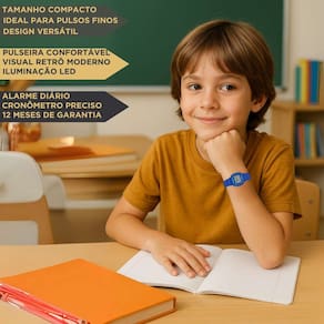 Com um estilo divertido e toque retrô, o relógio Casio Infantil Digital LA-20WH é perfeito para crianças que buscam praticidade e personalidade no dia a dia. Extremamente leve e confortável, pesa apenas 16 g, trazendo bem-estar no uso prolongado. Sua pulseira em resina resistente garante durabilidade, enquanto o visor digital iluminado por luz LED laranja facilita a leitura em qualquer ambiente, inclusive à noite. O modelo oferece funções essenciais como cronômetro, calendário automático, formatos 12/24h e alarme diário, unindo diversão e funcionalidade. Com resistência à água de até 30 metros, é ideal para o uso cotidiano sem preocupações, acompanhando o ritmo ativo das crianças com charme e segurança.