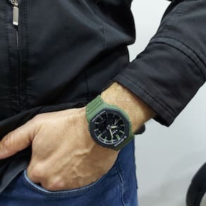 Marca: Casio Modelo: GA-2110SU-3ADR Tipo de relógio: Analógico e Digital Gênero: Masculino Cor da caixa: Verde Cor da pulseira: Verde Estilo: Casual Alarme: Sim Cronômetro: Sim Calendário: Sim Luz: Sim Resistência à água: Sim – 20 ATM = 200 metros Tipo de fecho: Fivela Simples Material da caixa: Resina Material da pulseira: Resina Características do vidro: Vidro Mineral Tamanho da caixa (A x L): 48.5 × 45.4 mm Espessura da caixa: 11,8 mm Comprimento da pulseira: 25 cm Largura da pulseira: 19 mm Tampa do fundo: Parafusado Peso: 51 Gramas Alimentação: Bateria Garantia do Fabricante: 12 meses Fabricante: Casio