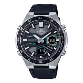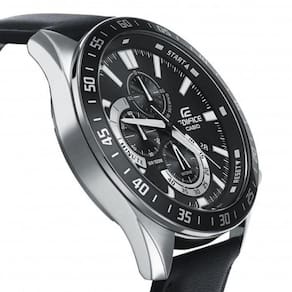 Marca: casio Modelo: efv-620l-1avudf Tipo de relógio: Analógico Gênero: masculino Estilo: casual Calendário: sim Cronômetro: sim Alarme: não Luz: não - ponteiros e marcadores fluorescentes Resistência à água: Sim - 10 ATM = 100 metros Tipo de fecho: Fivela Simples Material da Caixa: Aço Inoxidável Material da Pulseira: Couro Características do vidro: Vidro mineral Tamanho da caixa C L A : 55 50.5 11.8 mm Peso do produto: 94 Gramas Cor da pulseira: Preto Cor da caixa: Prateado Alimentação: bateria Garantia do Fabricante: 12 meses Fabricante: casio Ean: 4549526312205