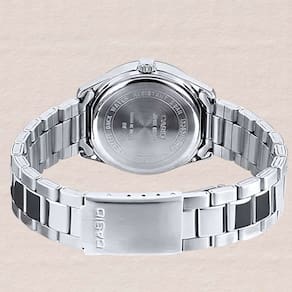 O Casio LTP-1302PD-1A1V é um relógio feminino que combina elegância e durabilidade com a assinatura tradicional da Casio. Seu mostrador preto com marcadores prateados cria um contraste sofisticado e de fácil leitura. A caixa e a pulseira em aço inoxidável proporcionam brilho refinado e resistência superior. O vidro mineral garante proteção contra riscos leves, enquanto a resistência à água de até 5 ATM assegura desempenho confiável no uso diário. Com calendário posicionado às 3h e acabamento impecável, este modelo é o equilíbrio perfeito entre estilo clássico, conforto e funcionalidade moderna.