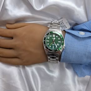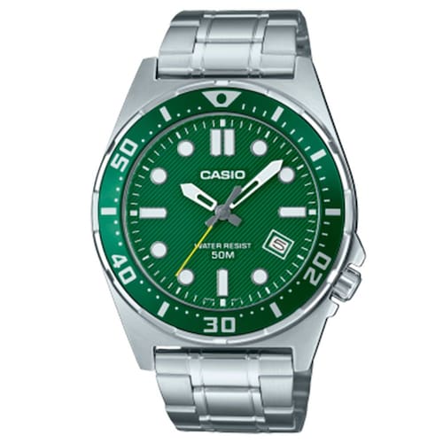 Características Formato do Relógio: Redondo Composição do Vidro: Cristal mineral Material da Caixa: Aço Inox Cor da Caixa: Prata Cor do mostrador: verde Material da Pulseira: Aço Inox Cor da Pulseira: Prata Mecanismo: Analógico Quartz