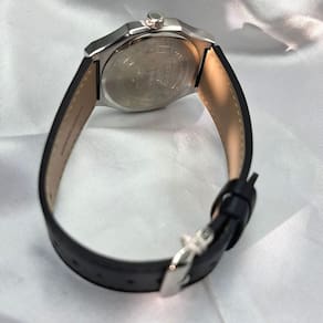 Características Formato do Relógio: Redondo Composição do Vidro: Cristal mineral Material da Caixa: Aço Inox Cor da Caixa: Prata Cor do mostrador: Preto Material da Pulseira: Couro Cor da Pulseira: Preto Mecanismo: Analógico Quartz