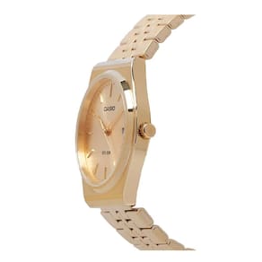 Características Formato do Relógio: Redondo Composição do Vidro: Cristal mineral Material da Caixa: Aço Inox Cor da Caixa: Dourado Cor do mostrador: Dourado Material da Pulseira: Aço inox Cor da Pulseira: Dourado Mecanismo: Analógico Quartz