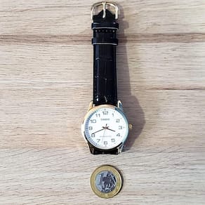 Marca: Casio Modelo: MTP-V001GL-7BUDF Tipo de relógio: Analógico Gênero: Masculino Cor da caixa: Dourado Cor da pulseira: Preto Estilo: Social Alarme: Não Cronômetro: Não Calendário: Sim Luz: Não Resistência à água: Sim – rotinas diárias Tipo de fecho: Fivela Simples Material da Caixa: Aço Inoxidável Material da Pulseira: Couro Características do vidro: Vidro Mineral Tamanho da caixa (A x L): 45 x 38 mm Espessura da caixa: 8 mm Peso: 42 g Comprimento da pulseira: 23 cm Largura da pulseira: 18 mm Tampa do fundo: Pressão Alimentação: Bateria Garantia do Fabricante: 12 meses Fabricante: Casio