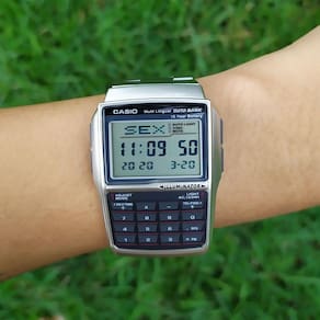 Combine um relógio digital com uma calculadora de 10 teclas e você obterá toda a conveniência de uma calculadora de 8 dígitos em um relógio de pulso. Um LCD grande de alto contraste facilita a leitura dos valores. Outros recursos incluem recursos de banco de dados, exibição do dia da semana em 13 idiomas e pilha de 10 anos de vida útil com operação ininterrupta.