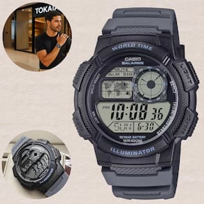 O Casio AE-1000W-8AVDF é o relógio ideal para homens que unem estilo utilitário e funcionalidade global. Seu design robusto com acabamento em verde militar destaca o visual esportivo e moderno, enquanto a caixa em resina leve oferece conforto no uso diário. O destaque vai para o recurso World Time, que exibe até quatro fusos horários simultaneamente, perfeito para quem vive conectado ao mundo. Com resistência à água de até 100 m, cronômetro de 1/100 s, temporizador de 24 h e cinco alarmes diários, este modelo traduz a essência Casio: durabilidade, precisão e praticidade. O LED âmbar de alta visibilidade garante leitura perfeita em qualquer ambiente, tornando o AE-1000W-8AVDF um aliado confiável para o dia a dia e aventuras extremas.