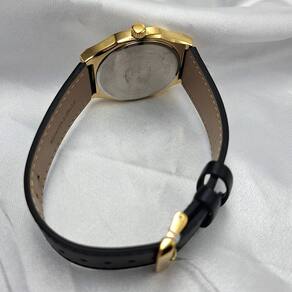 Características Formato do Relógio: Redondo Composição do Vidro: Cristal mineral Material da Caixa: Aço Inox Cor da Caixa: Dourado Cor do mostrador: Preto Material da Pulseira: Couro Cor da Pulseira: Preto Mecanismo: Analógico Quartz