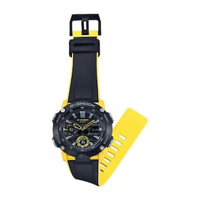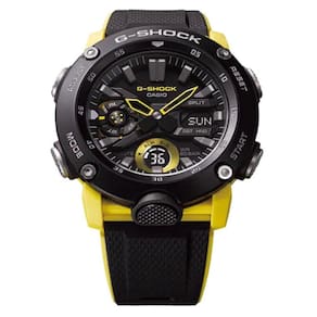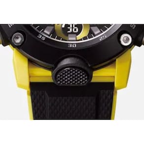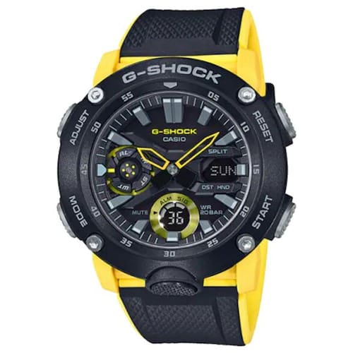 G Shock Carbon Core Guard GA-2000-1A9DR tem a caixa feita de resina fina com fibra de carbono que, embora leve, excede a rigidez da resina normal. Evita danos e deformações por impactos, para proteger o módulo interno. Além disso, a estrutura de duas camadas da tampa traseira também protege contra impactos na parte traseira do relógio. A estrutura do botão à prova de choque também permite que o exterior seja projetado sem uma proteção de botão. O design conta com um mostrador tridimensional e uma disposição ousada de botões frontais grandes. Acabamento com um design resistente que cria um visual poderoso. Um modelo que combina a estrutura G-SHOCK à prova de choques com um estilo urbano em ambientes externos.