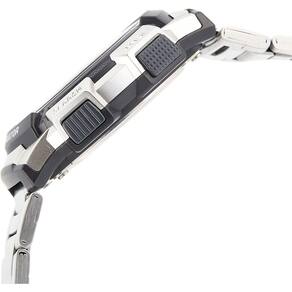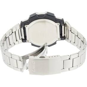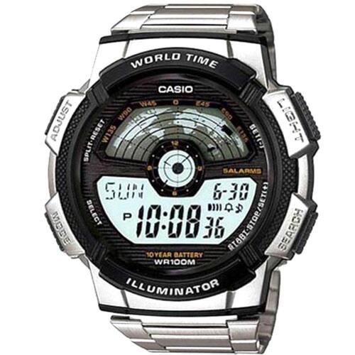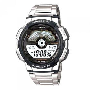Descrição Relógio Casio Masculino Digital Esportivo Prata AE-1100WD-1AVDFRecursos:10 anos de duração da bateriaMapa mundial para hora mundialCronômetros de 1/100 segundosVisor analógico LC (Hora da cidade local)Resistência à água a até 100 metrosEspecificações:Material do corpo/anel: resina1 pressionamento, fecho de 3 dobrasPulseira de Aço InoxidávelVidro Resina / Vidro EsféricoResistente a água a até 100 mFundo luminoso LEDDuração de luminosidade selecionável, Persistência luminosaHoras variadas (4 cidades diferentes)Hora mundial31 fusos horários (48 cidades + tempo universal coordenado), horário de verão (liga/desliga), troca de cidade de referência/hora mundialCronômetro de 1/100 segundoCapacidade de medição: 23:5959.99Modos de medição: Tempo transcorrido, divisão de tempo, hora no 1 e 2 pontoTemporizadoresUnidade de medição: 1/10 segundoFaixa de entrada: 1 segundo a 24 horas (incrementos de 1 segundo, incrementos de 1 minuto e 1 hora)Alarmes5 alarmes independentes (uma vez ou diários)sinalização a cada horaCalendário totalmente automático (até o ano 2099)Formatos 12/24 horasAtivação e desativação do tom de operação do botãoHorário regularDigitais: Hora, minuto, segundo, pm (post meridiem), mês, data, diaPrecisão: 30 segundos por mêsDuração aprox. da bateria: 10 anos com CR2025Medidas:Diâmetro da caixa: 4,8x4,4cmEspessura da caixa: 1,4cmLargura da pulseira: 2,4cmTamanho da pulseira: 22cmPeso do relógio: 82g