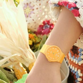 Opte por um estilo casual clássico com um relógio com ponteiros básicos das horas, minutos e segundos, um perfil elegante e um ajuste leve e confortável, apenas 20g. O design com ponteiros de horas, minutos e segundos apresenta números simples numa ampla variedade de esquemas de cores monocromáticos diferentes, tudo com um aspeto e toque elegantes e minimalistas. A bracelete é fabricada com resina biológica, um material que se espera contribuir para reduzir o impacto ambiental.