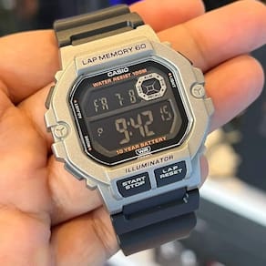 Iluminação LED Hora dupla Temporizador Cronômetro de 1/100 de segundo 3 Alarmes multifuncionais Calendário automático completo (até o ano de 2099) Formato 12/24 horas Horário regular: Hora, minutos, segundo, pm, mês, data, dia Precisão: ±30 segundos por mês Duração aprox. da pilha: 10 anos Resistência à água : 10 atm / Este relógio é classificado como resistente à água ou pressão de 10 ATM.