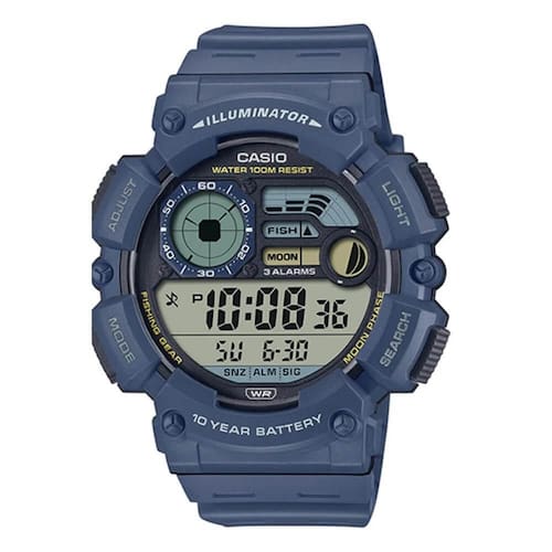 Satisfaça o seu lado mais prático, sem abdicar do estilo, com uma abordagem arrojada a um relógio digital multifuncional, num design de tamanho generoso e de leitura fácil. Concebidos com uma bateria de 10 anos, resistência à água até 100 metros, luz LED e visor de dois horários, estes relógios estão sempre preparados. A fase da lua e os indicadores do nível de pesca fornecem exatamente aquilo de que necessita quando está na água.