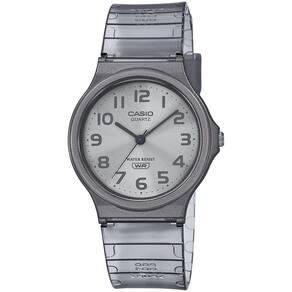 Características Formato do Relógio: Redondo Composição do Vidro: Cristal mineral Material da Caixa: Resina Cor da Caixa: Cinza Cor do mostrador: Cinza Material da Pulseira: Resina Acrílica Cor da Pulseira: Cinza, Transparente Mecanismo: Analógico Quartz