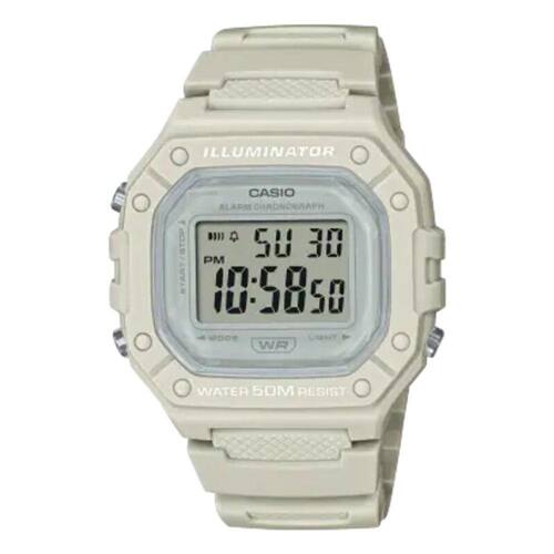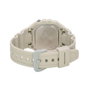 Tenha o icônico mostrador quadrado combinado com pulseira de resina. Este design esportivo apresenta um destaque colorido para levar seu estilo de elegante a casual, independentemente do que estiver na sua agenda. Ele não é apenas versátil, mas prático também. Com os recursos que a tecnologia digital oferece, a luz LED para facilitar a leitura no escuro, cronômetro de 1/100 segundo, alarme e calendário, todos protegidos por resistência à água de até 50 metros.