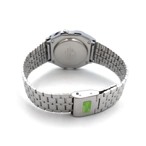 Características Formato do Relógio: Retangular Composição do Vidro: Acrílico Material da Caixa: Resina Cor da Caixa: Prata Cor do mostrador: Digital Material da Pulseira: Aço Inox Cor da Pulseira: Prata Mecanismo: Digital