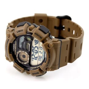 Mecanismo digital Caixa do relógio de resina azul Pulseira de resina / borracha azul Fivela de plástico Mostrador digital padrão números escuros e fundo claro Vidro de Acrílico Relógio com calendário digital, cronômetros progressivo e regressivo, 3 alarmes multifuncionais 2 alarmes de uma vez e 1 soneca/alarme único ; Tipo de alarme: Alarme diário, alarme de data, alarme de 1 mês, alarme mensal, hora dupla e horário de verão, Dados da lua idade da lua da data específica, gráfico de fases da lua , Modo de pesca A adequação de uma data e hora específicas para a pesca é indicada como um dos quatro níveis. Formato de 12/24 horas Botões simples de pressão padrão sem rosca Tampa posterior parafusada Resistência à água 10ATM 100M Itens Inclusos na Caixa: Relógio, manual de instruções, certificado de garantia Garantia: 12 meses Rede de Autorizadas Máquina movida a bateria / quartz Ean: 4549526342004
