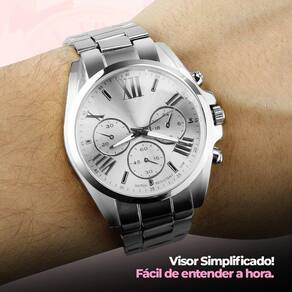 Relogio casual aço inox premium prova dagua prata feminino Relógio Analógico Feminino Todo Em Tom Prata Em Aço Inox À Prova D'água