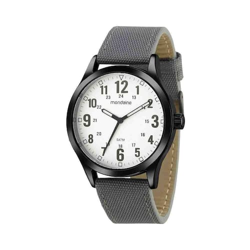 Descrição -marca: Mondaine -Gênero: Masculino -Tipo De Mostrador: Analógico -Cor Do Mostrador: Prata -Cor Da Caixa: Preto -Material Da Pulseira: Nylon. -Cor Da Pulseira: Cinza -Tipo De Fecho: Fivela -Resistência À Água: 5 Atm -Garantia: 12 Meses Tamanho/dimensões -Caixa: 44mm -Comprimento Da Pulseira: 190cm -Largura Da Pulseira: 22mm