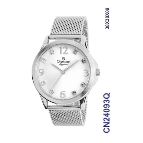 Relógio Champion CN24093Q Especificações Gênero: Feminino Tipo de Maquinário: Analógico Cor do Mostrador: Prata Cor da Caixa: Prata Tamanho da Caixa: 38mm Material da Caixa: Metal Cor da Pulseira: Prata Material da Pulseira: Aço Resistência à água: 5ATM Fabricado por Magnum Industria da Amazônia S/A. Com Garantia de 1 Ano