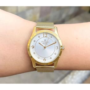 Relógio champion dourado feminino + colar e brincos cn29910w Relógio champion feminino dourado cn29910w acompanha colar e par de brincos folheados com cristais