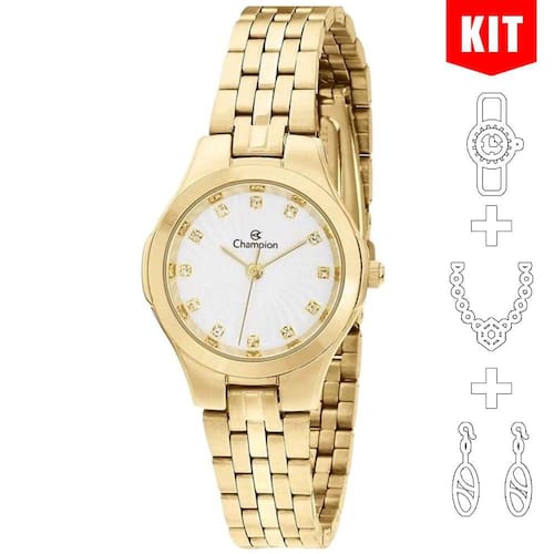 Características Formato do Relógio: Redondo Composição do Vidro: Cristal mineral Material da Caixa: Metal Cor da Caixa: Dourado Cor do mostrador: Branco Material da Pulseira: Aço Inox Cor da Pulseira: Dourado Mecanismo: Analógico Quartz
