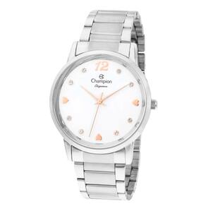 Características Formato do Relógio: Redondo Composição do Vidro: Cristal Mineral Material da Caixa: Aço Inox Cor da Caixa: Prata Cor do mostrador: Branco, rosê Material da Pulseira: Aço Inox Cor da Pulseira: Prata Mecanismo: Analógico Quartz