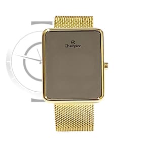 Marca: Champion Modelo: CH40080B Tipo de relógio: Digital Gênero: Feminino Cor da caixa: Dourado Cor da pulseira: Dourado Estilo: Casual Alarme: Não Cronômetro: Não Calendário: Sim Luz: Sim Resistência à água: Sim – 3 ATM = 30 metros Tipo de fecho: Pressão Material da Caixa: Aço Inoxidável Material da Pulseira: Mesh de Aço Inoxidável Características do vidro: Cristal Mineral Tamanho da caixa (A x L): 44 x 37 mm Espessura da caixa: 10 mm Peso: 127 gramas Alimentação: Bateria Garantia do Fabricante: 12 meses Fabricante: Magnum Indústria da Amazônia S/A