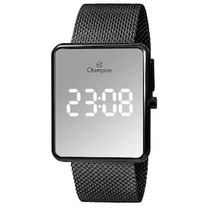 Características Formato do Relógio: Retangular Composição do Vidro: Cristal mineral Material da Caixa: Metal Cor da Caixa: Preto Cor do mostrador: Digital, Espelhado Material da Pulseira: Aço Inox Cor da Pulseira: Preto Mecanismo: Digital