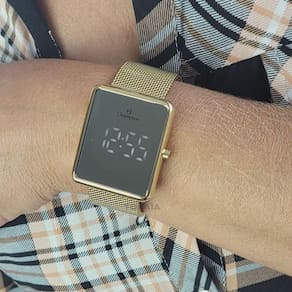 Relógio Champion Feminino Digital Led Casual Dourado CH40080BMarca: ChampionModelo: CH40080BTipo de mostrador: Digital LedMecanismo: QuartzoAlimentação: BateriaFormato da Caixa: QuadradoCor do mostrador: Espelhado PrataCor da caixa: DouradoCor da pulseira: DouradoMaterial do Vidro: Cristal MineralMaterial da caixa: MetalMaterial da pulseira: AçoTipo de Fecho: Gancho com TravaNível de Resistência à Água: 30 metrosCalendário: SimCronômetro: NãoAlarme: NãoLuz noturna: NãoMedidas:Tamanho da Caixa: 3,7x4,4cmEspessura da Caixa: 1,1cmLargura da Pulseira: 2,3cmTamanho da pulseira: 21cmPeso do Relógio: 128gConteúdo da Embalagem:Estojo da marcaAcessórios da marca (correspondentes a cada modelo)Manual em PortuguêsCertificado de 01 ano do FabricanteNota Fiscal EletrônicaFornecedor: Magnum Indústria da Amazônia SA. CNPJ: 63.715.510/0001-65