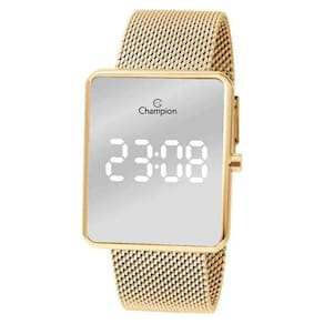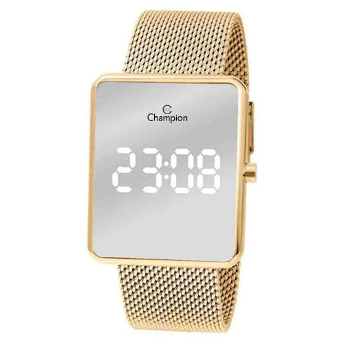 Relógio Champion Feminino Digital Led Casual Dourado CH40080BMarca: ChampionModelo: CH40080BTipo de mostrador: Digital LedMecanismo: QuartzoAlimentação: BateriaFormato da Caixa: QuadradoCor do mostrador: Espelhado PrataCor da caixa: DouradoCor da pulseira: DouradoMaterial do Vidro: Cristal MineralMaterial da caixa: MetalMaterial da pulseira: AçoTipo de Fecho: Gancho com TravaNível de Resistência à Água: 30 metrosCalendário: SimCronômetro: NãoAlarme: NãoLuz noturna: NãoMedidas:Tamanho da Caixa: 3,7x4,4cmEspessura da Caixa: 1,1cmLargura da Pulseira: 2,3cmTamanho da pulseira: 21cmPeso do Relógio: 128gConteúdo da Embalagem:Estojo da marcaAcessórios da marca (correspondentes a cada modelo)Manual em PortuguêsCertificado de 01 ano do FabricanteNota Fiscal EletrônicaFornecedor: Magnum Indústria da Amazônia SA. CNPJ: 63.715.510/0001-65