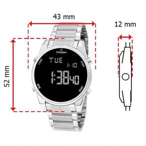 Relógio Champion Feminino Digital Prata Ch40071t Relógio CHAMPION feminino digital prata CH40071T. Acompanha embalagem oficial, certificado de garantia de 1 ano pelo fabricante e manual de instruções. Modelo: CH40071T Gênero: Feminino Garantia: 12 meses